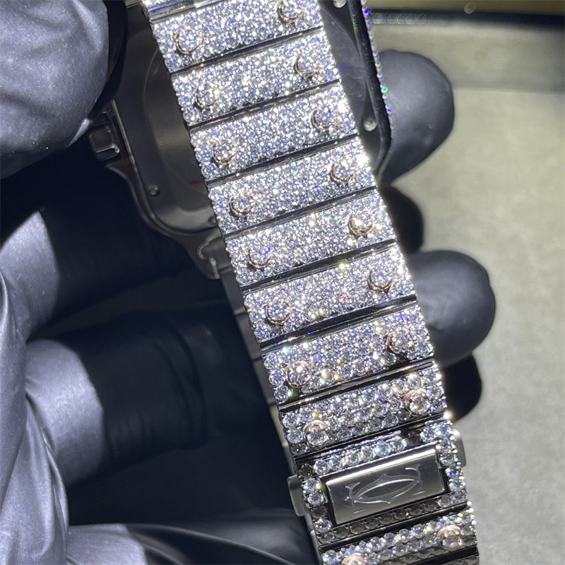 DEF VVS Moissaniteは腕時計を散りばめた|サントスはMoissaniteの腕時計から凍った|完全なBussdownの腕時計